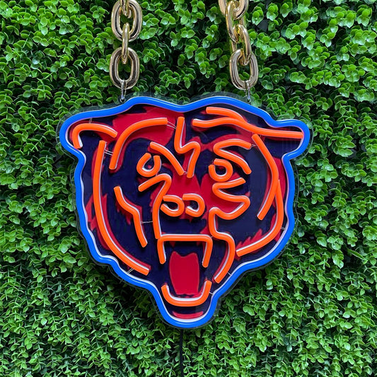 Chicago Bears NEON Necklace – Steel-Crafted Glow & Forged Chain | NeonFansCrafts